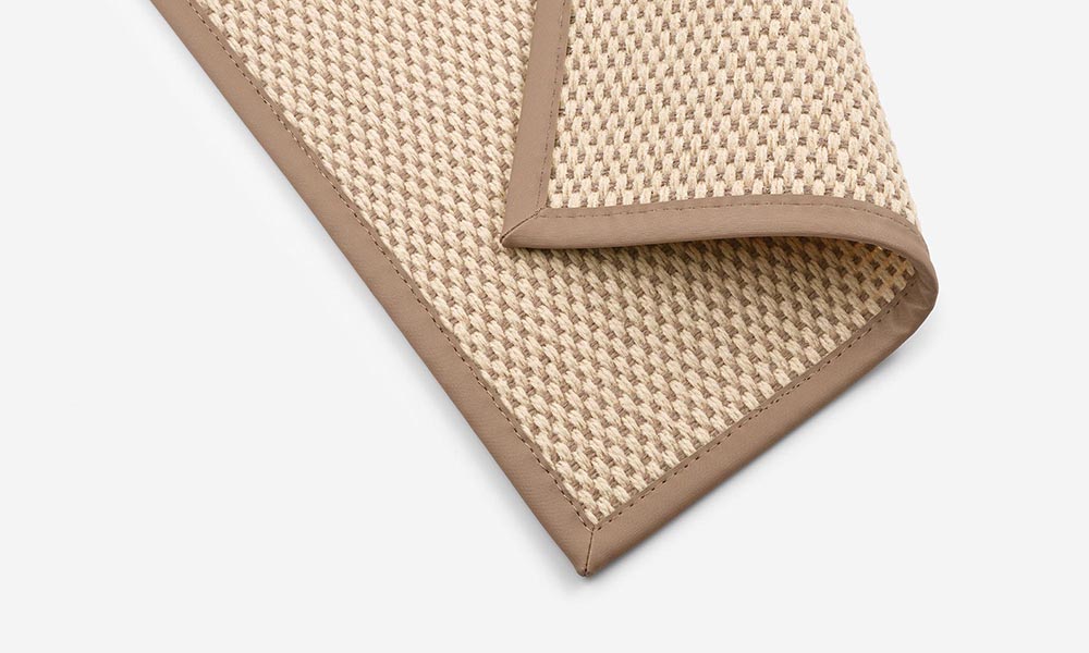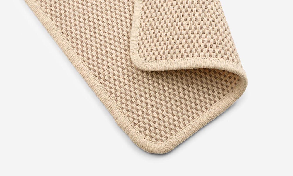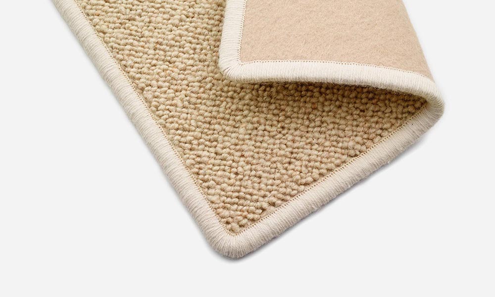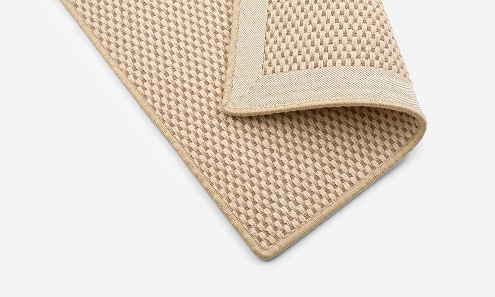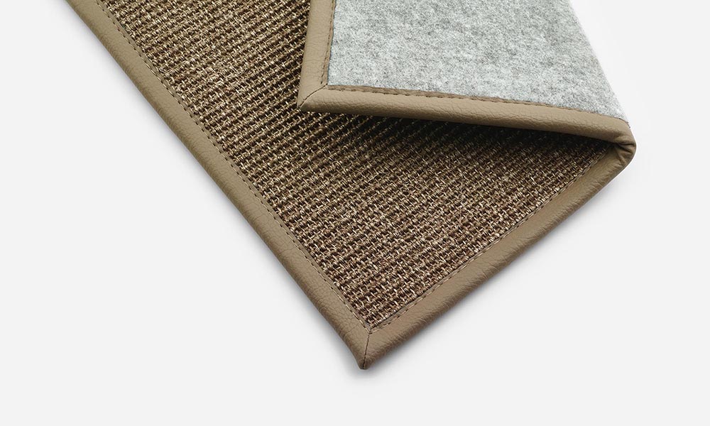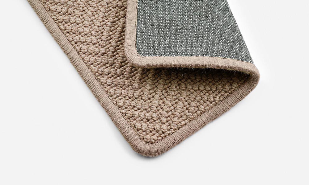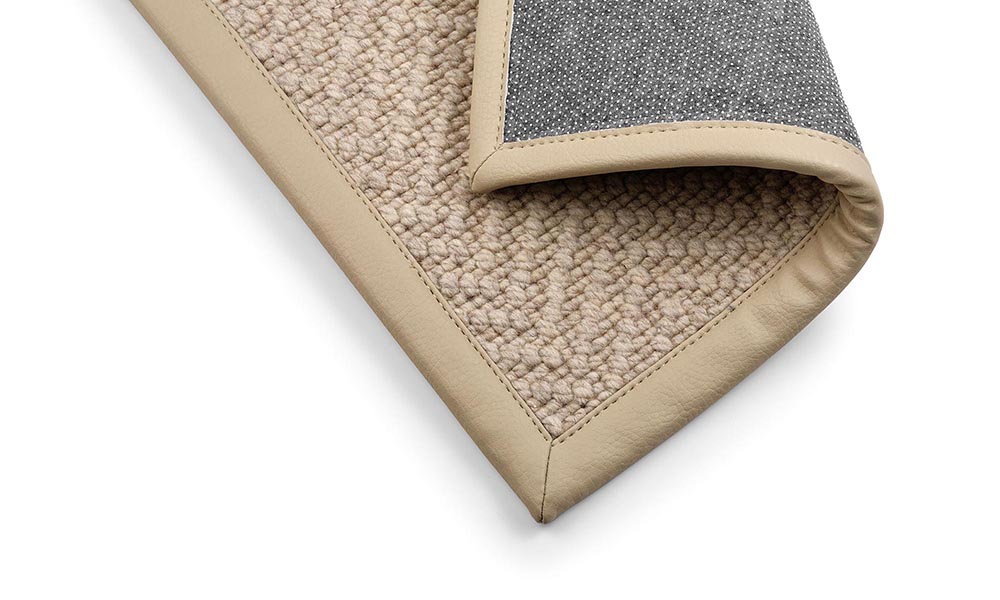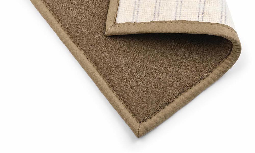 Confeccionado con una cinta de algodón de 4 cm aplicada hasta el borde de la moqueta.