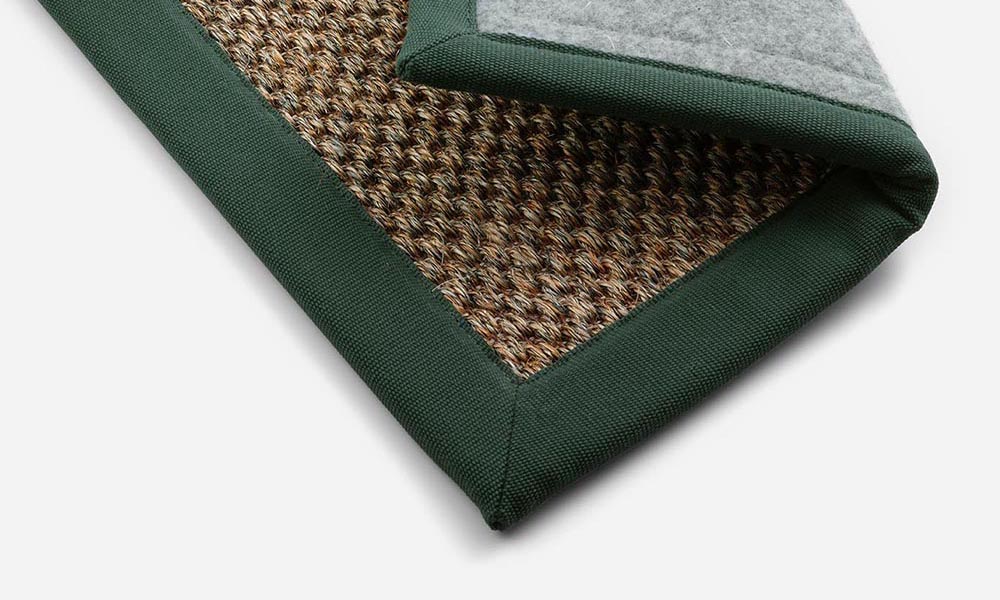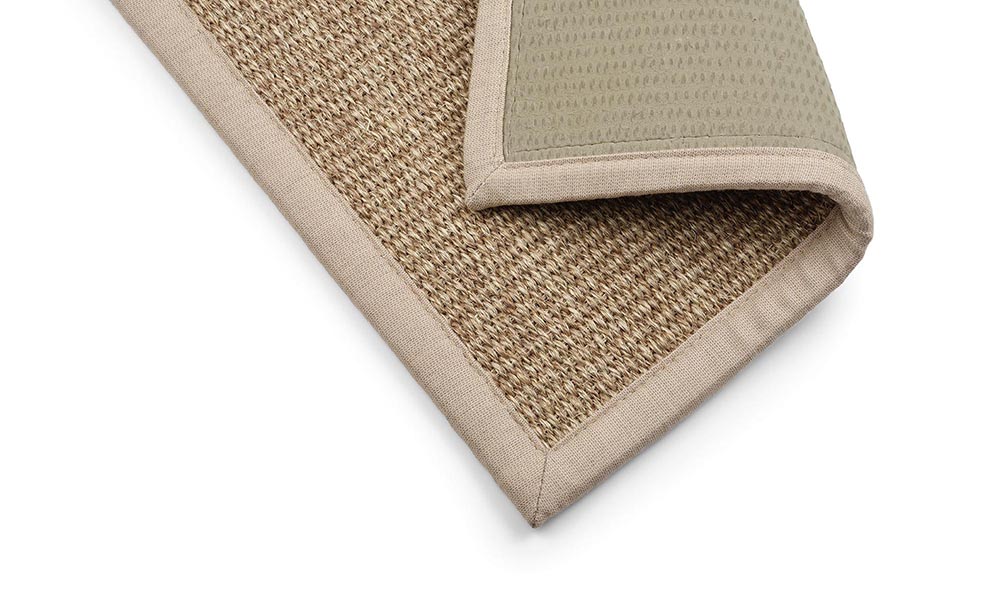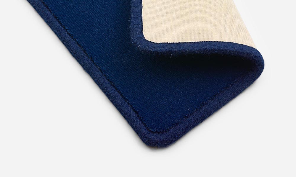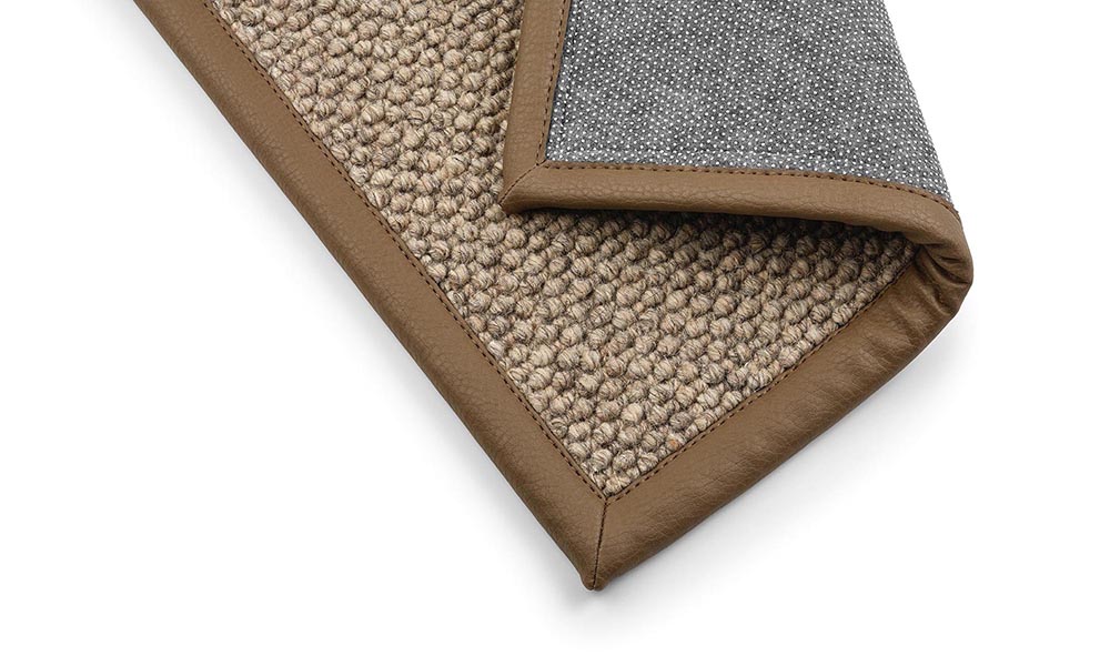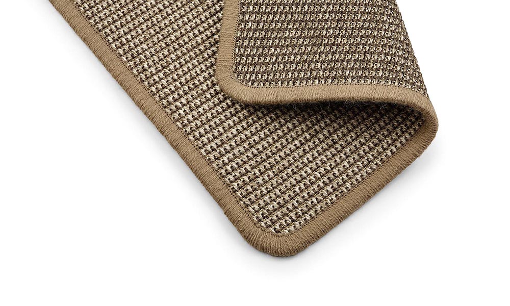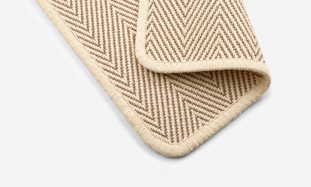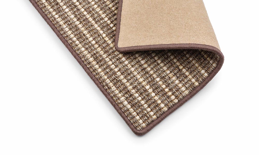 Confeccionado con una cinta de algodón de 4 cm aplicada hasta el borde de la moqueta.