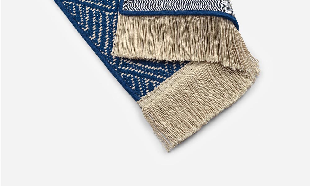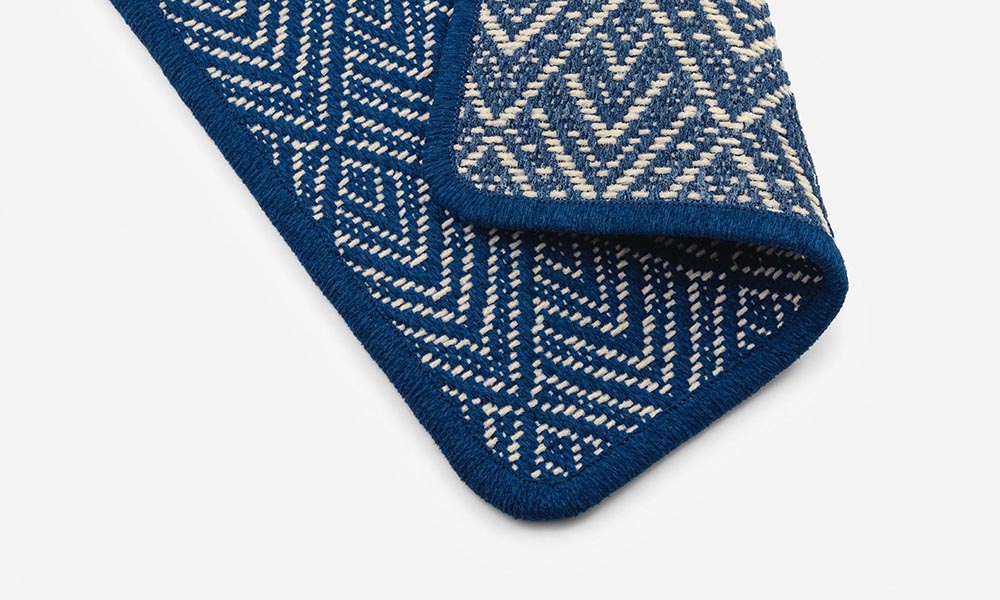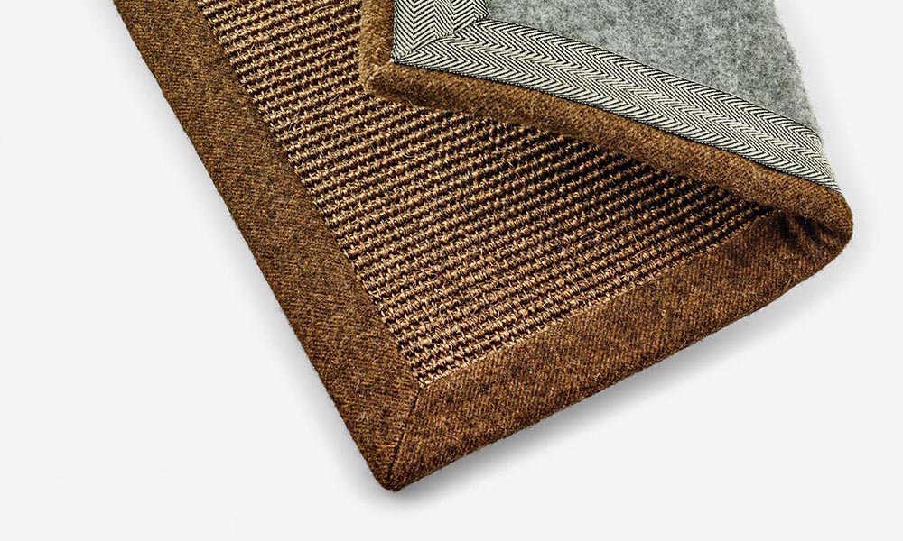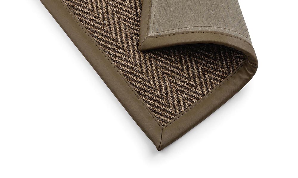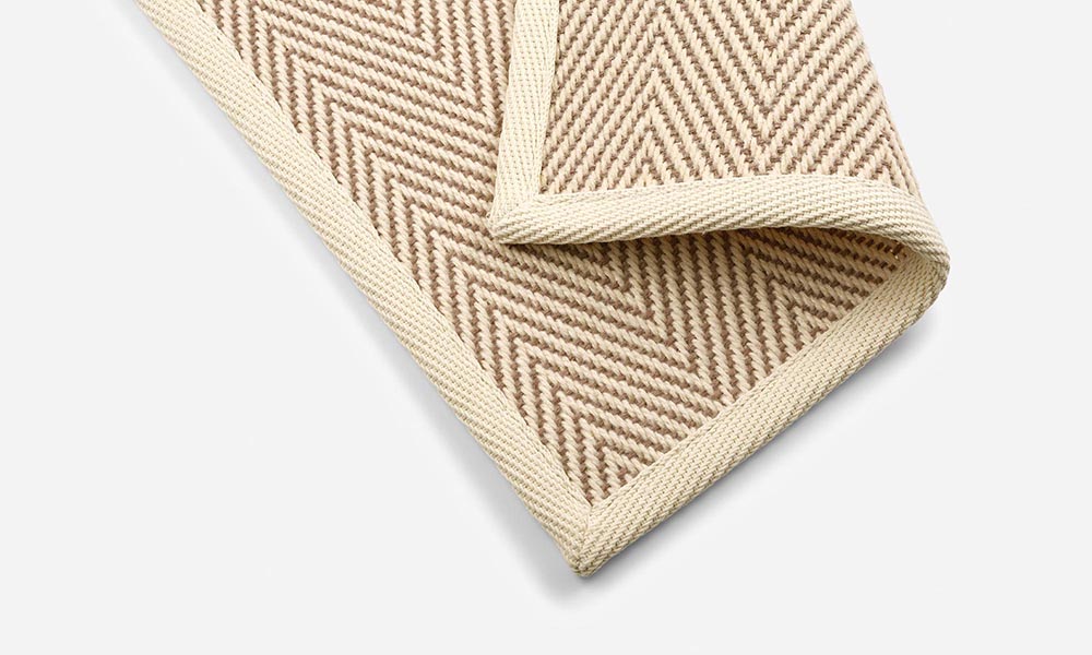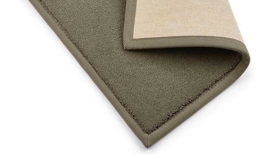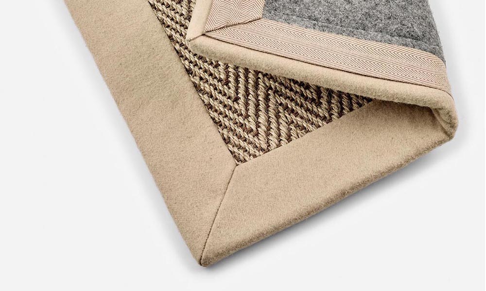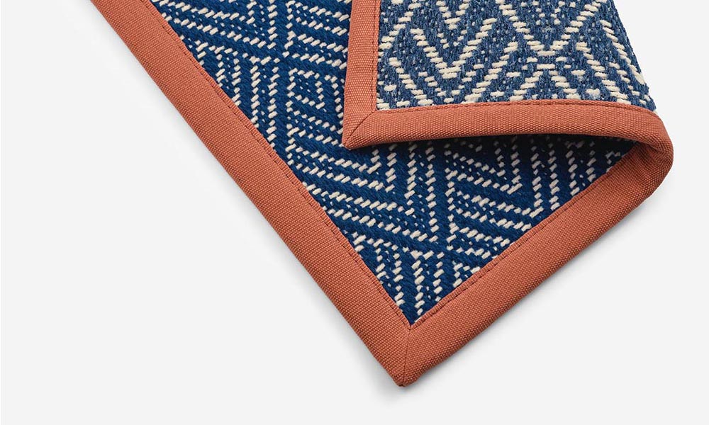 Confeccionado con una cinta de algodón de 4 cm aplicada hasta el borde de la moqueta.