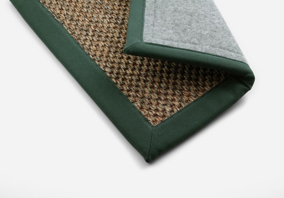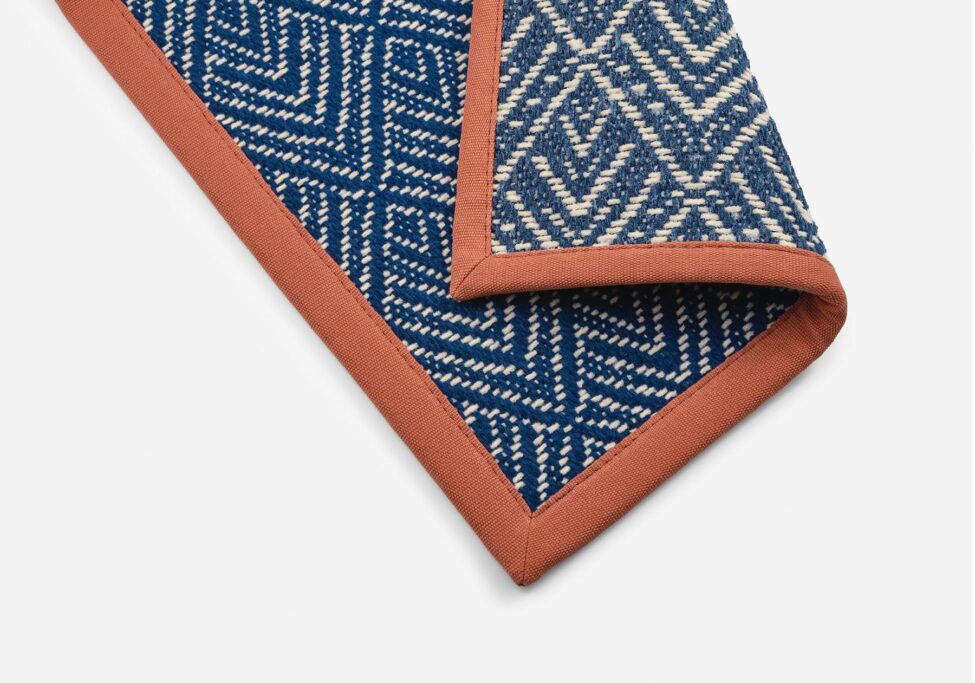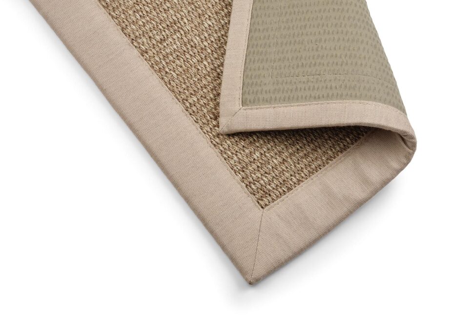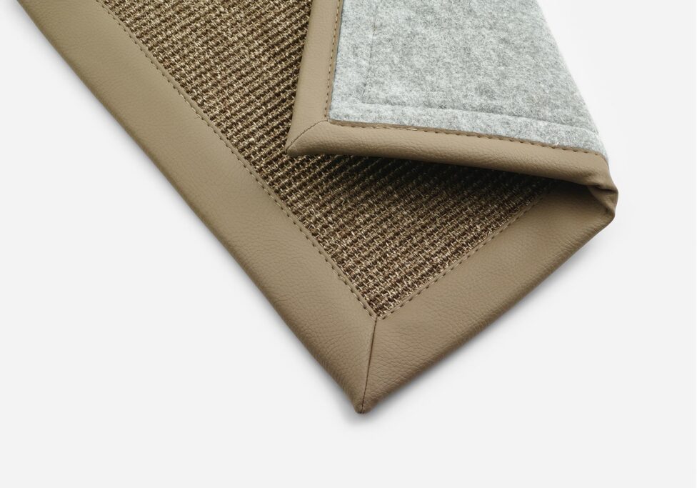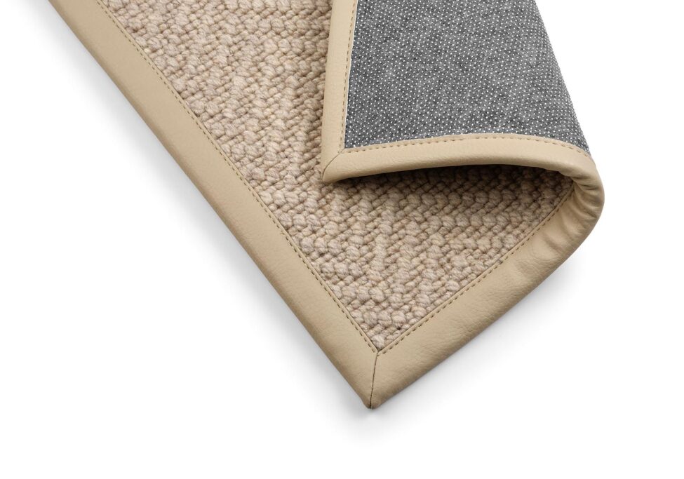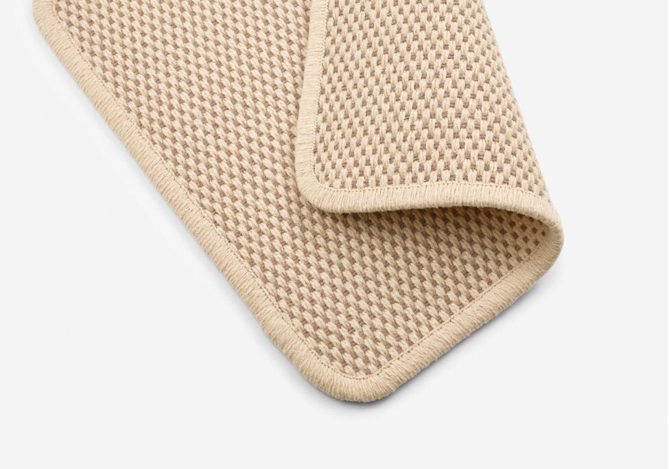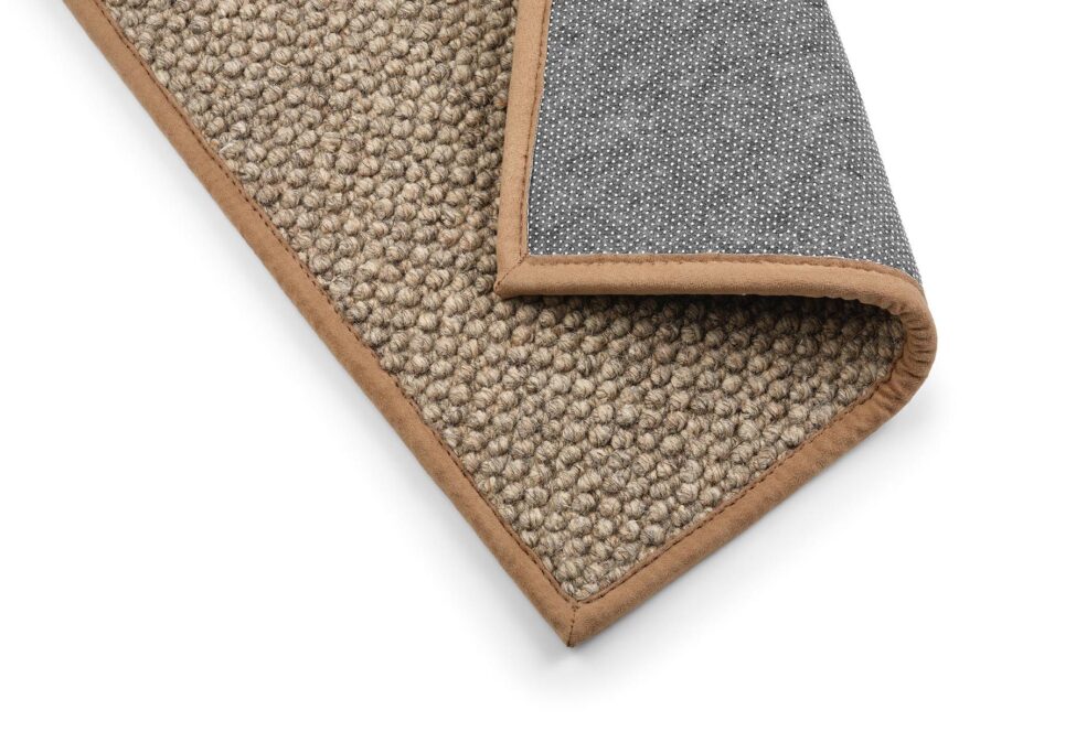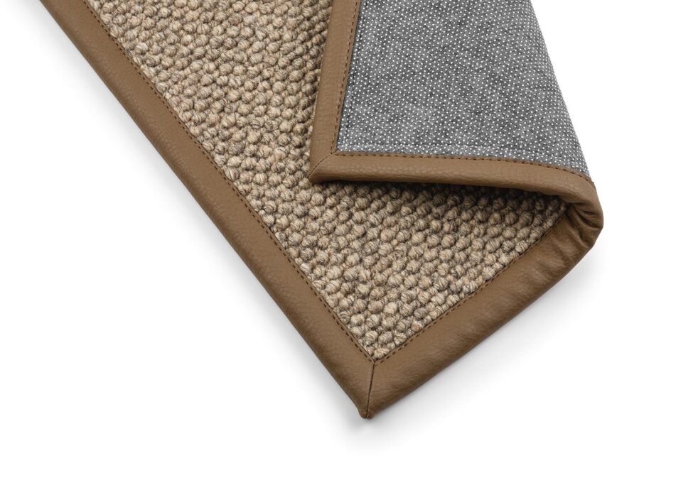 Confeccionado con una cinta de algodón de 4 cm aplicada hasta el borde de la moqueta.