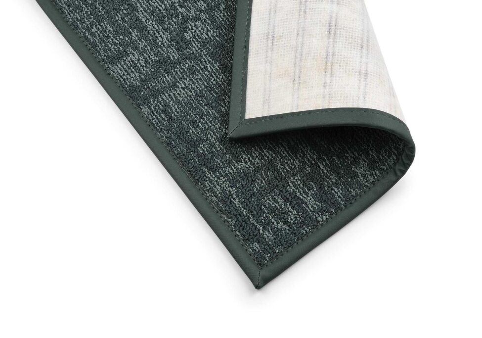 El remate Dobra + Feltex se aplica doblando (unos 3 cm) alrededor todo el perímetro de la alfombra.
