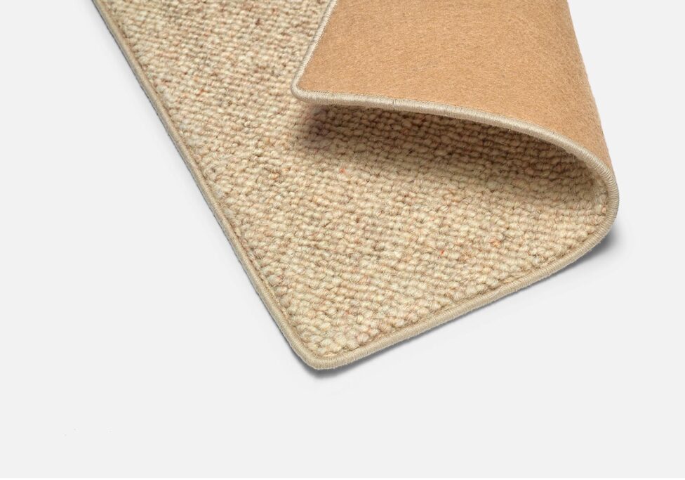 Se pega y se aplica una base de fieltro en toda la cara inferior. Se mejora la insonorización del espacio y la sensación de confort puesto que la alfombra adquiere más grosor y consistencia.