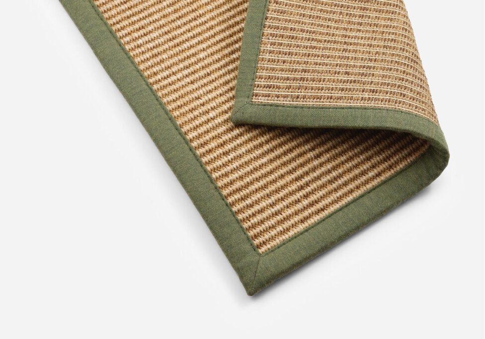 El remate Line es un festón de hilo 100% algodón, cosido en una puntada de aro en la alfombra, que da como resultado un borde fino.