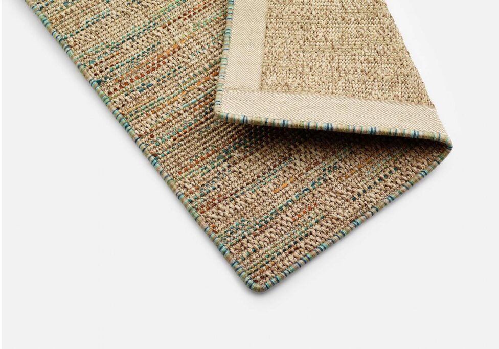 Hilo multicolor, 100% algodón, cosido en punto de bucle sobre la alfombra.