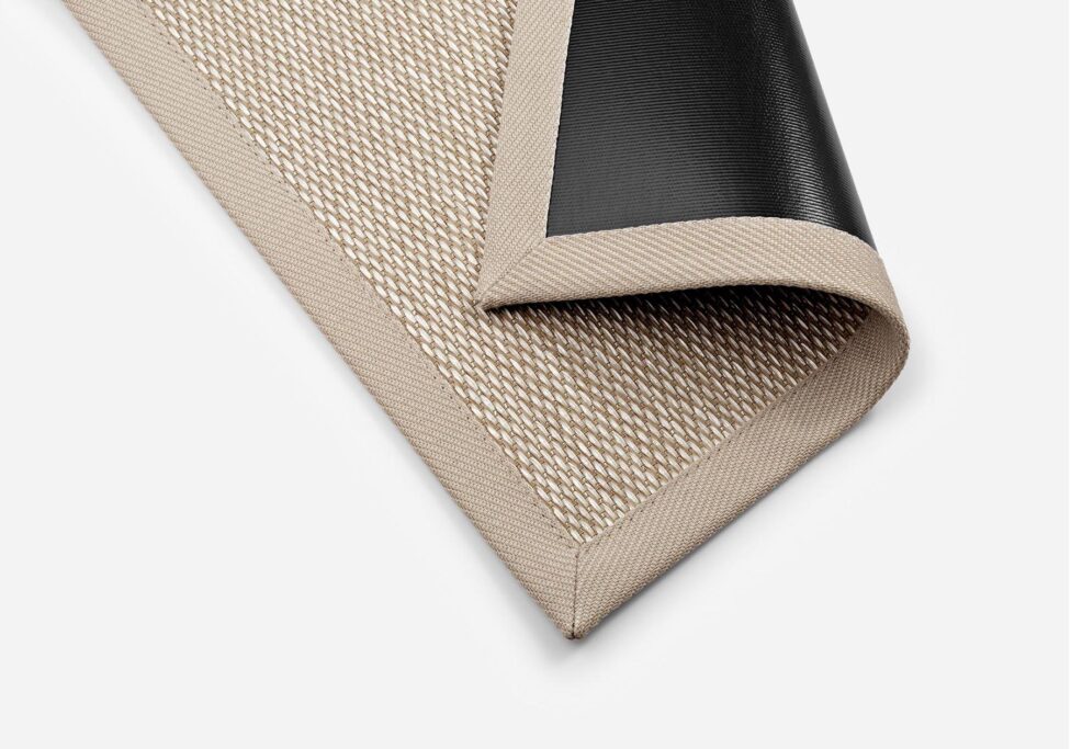 El remate Bay es resistente y apto para aplicar en alfombras de uso exterior.