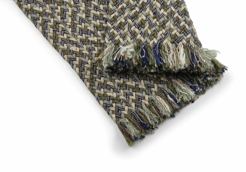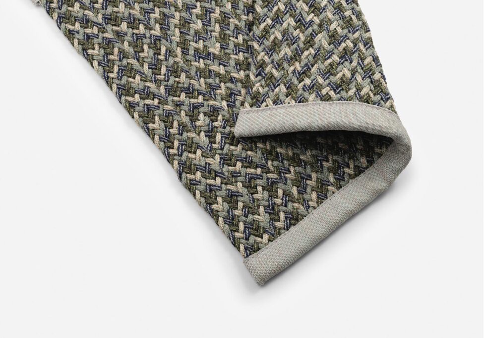 Es un tejido con acabado en espiga, versátil y muy rico visualmente, confeccionado con 2 cm vistos.