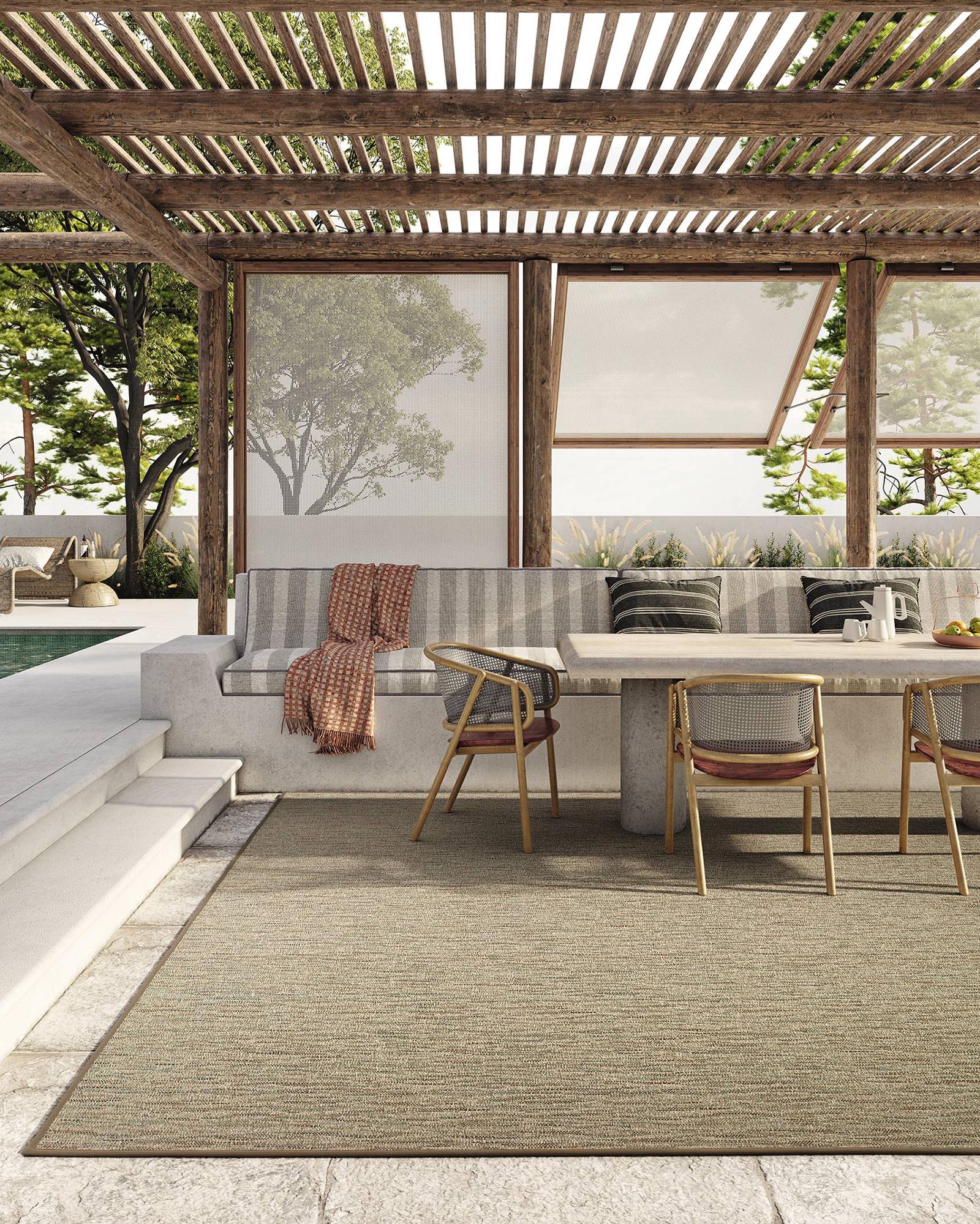 El remate Bay es resistente y apto para aplicar en alfombras de uso exterior.