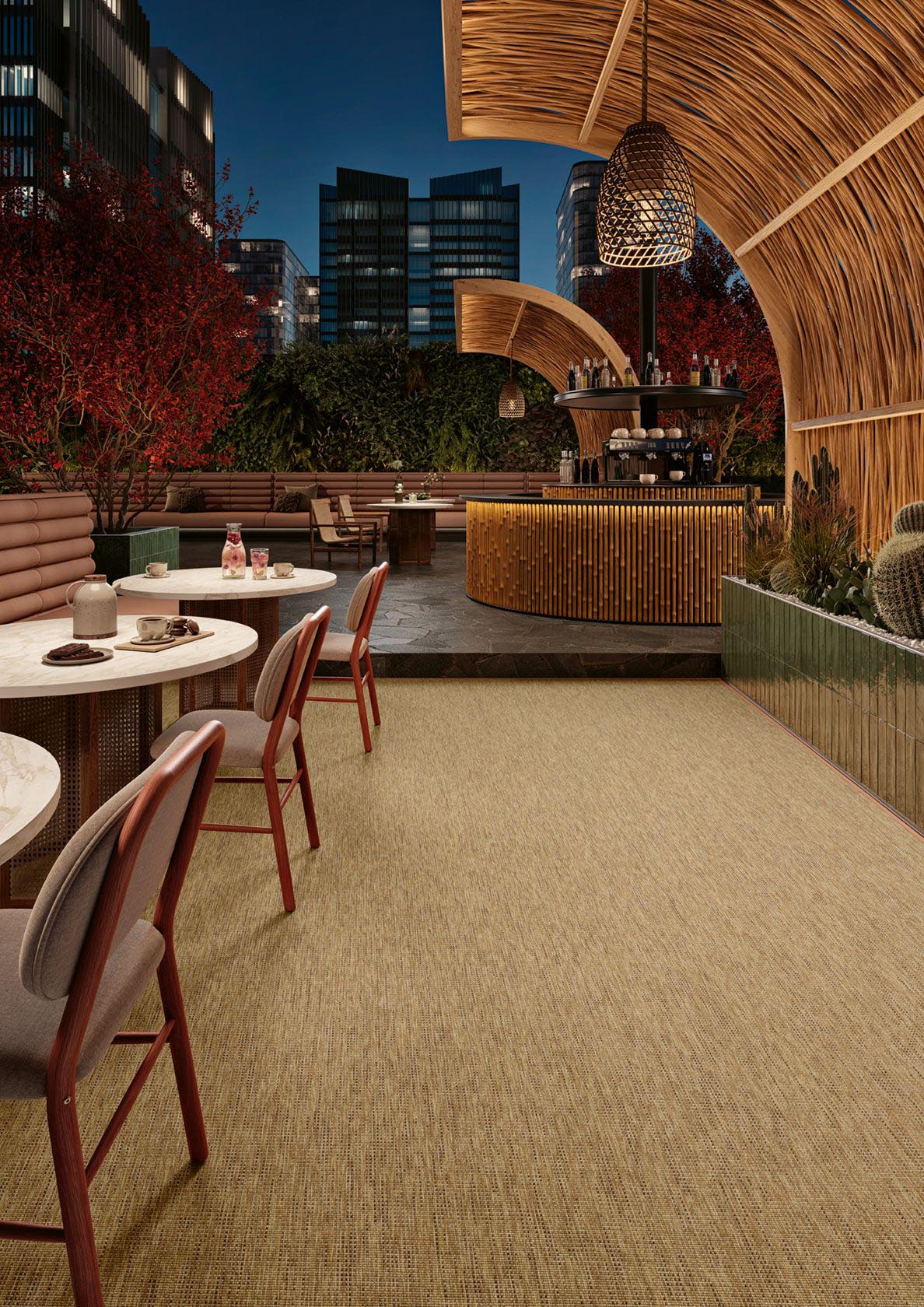 El remate Bay es resistente y apto para aplicar en alfombras de uso exterior.