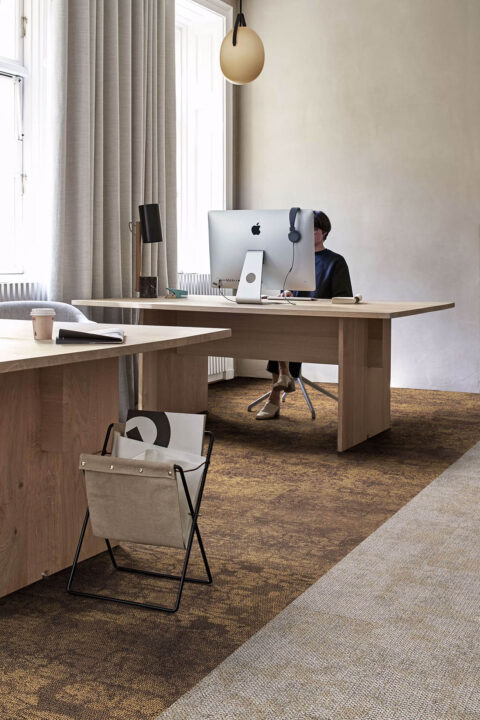 Interface permite crear pavimentos textiles que combinan el atractivo visual con el rendimiento funcional y la libertad de diseño. Para ello, utiliza un sistema de moqueta formada por losetas. Con su facilidad de instalación y mantenimiento, la moqueta en losetas es la elección perfecta para todas tus necesidades de pavimento. Crear una alfombra con losetas también es fácil y puede configurarse a tu gusto. Hay 2 tamaños de distintos de losetas dependiendo de cada colección: